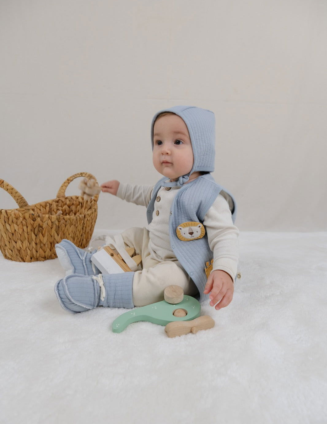 Quilted Organic Cotton Animal Appliqué Baby Vest – Blue