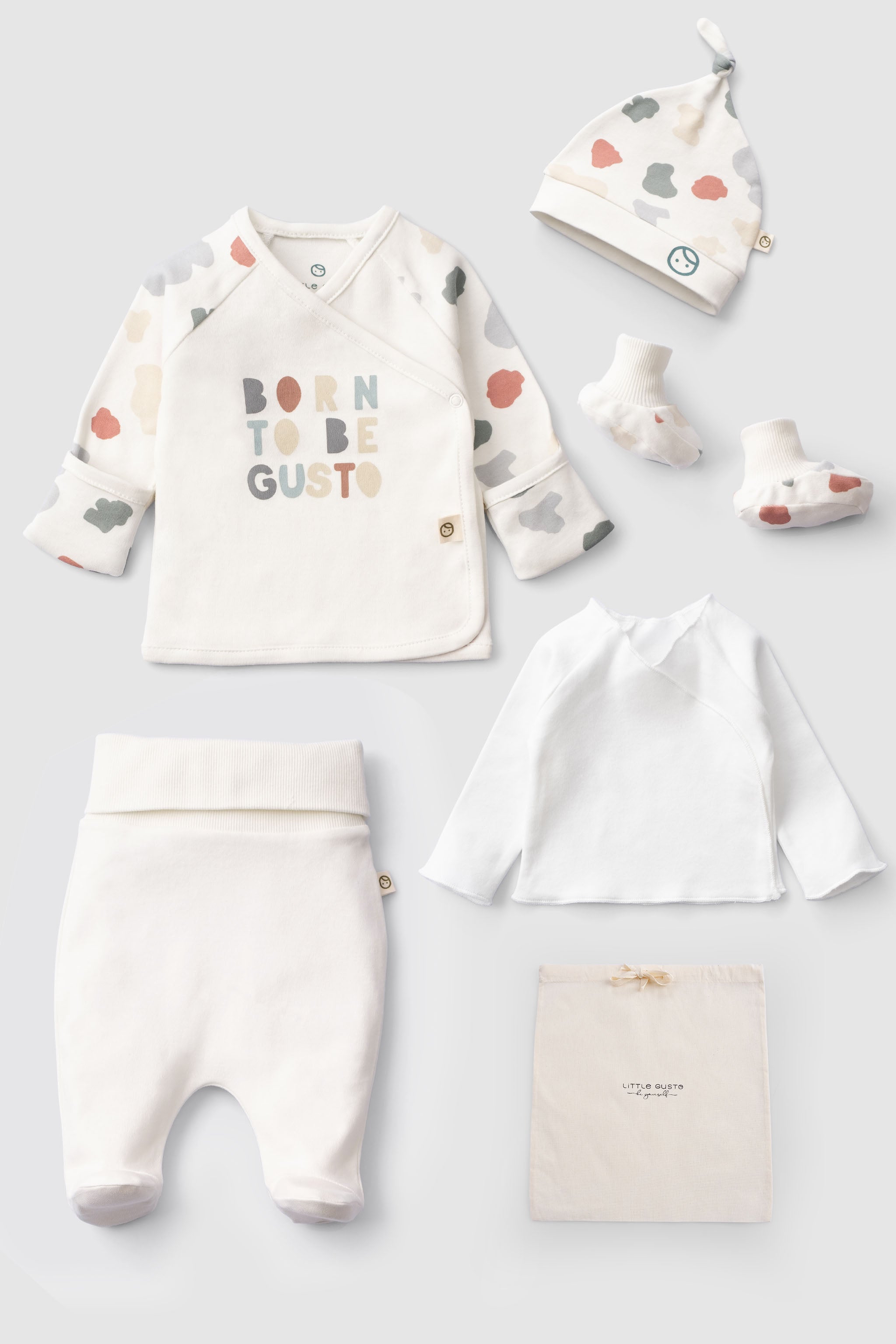 Welcome your little one with our beautifully designed 6-piece organic cotton newborn gift set from the Animal Collection. Thoughtfully curated for a baby’s first days, this premium set includes everything needed for a comfortable and stylish hospital or coming home outfit.