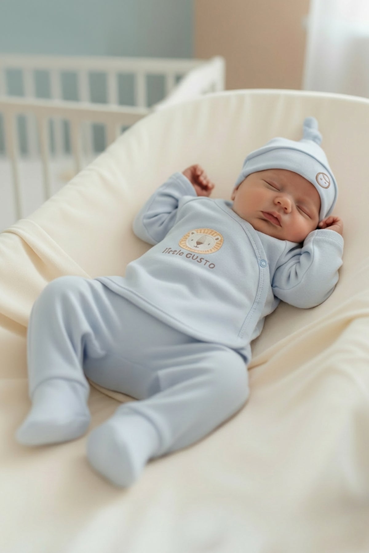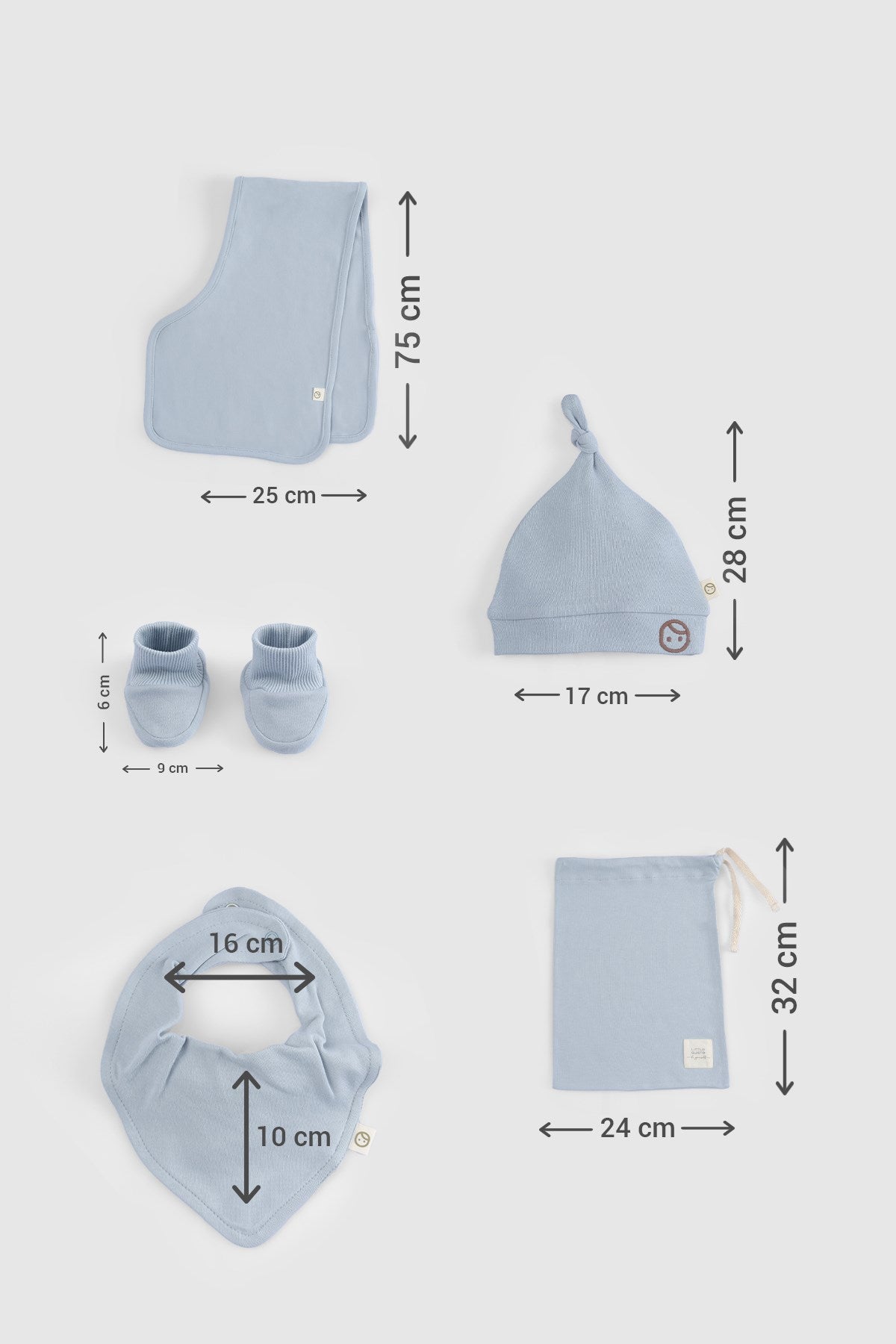 Crafted from 100% organic cotton, this soft blue 10-piece hospital set is designed to keep your newborn comfortable from their very first day. The breathable, gentle fabric is ideal for delicate skin and perfect for hospital stays and coming home moments.