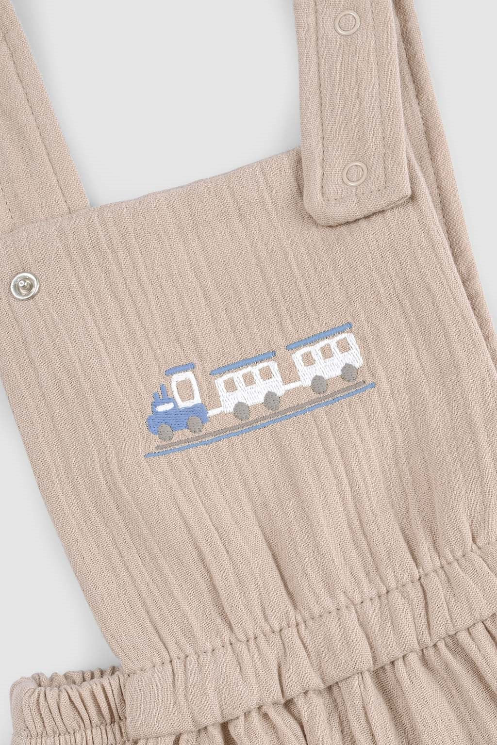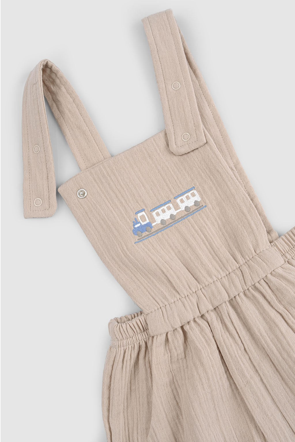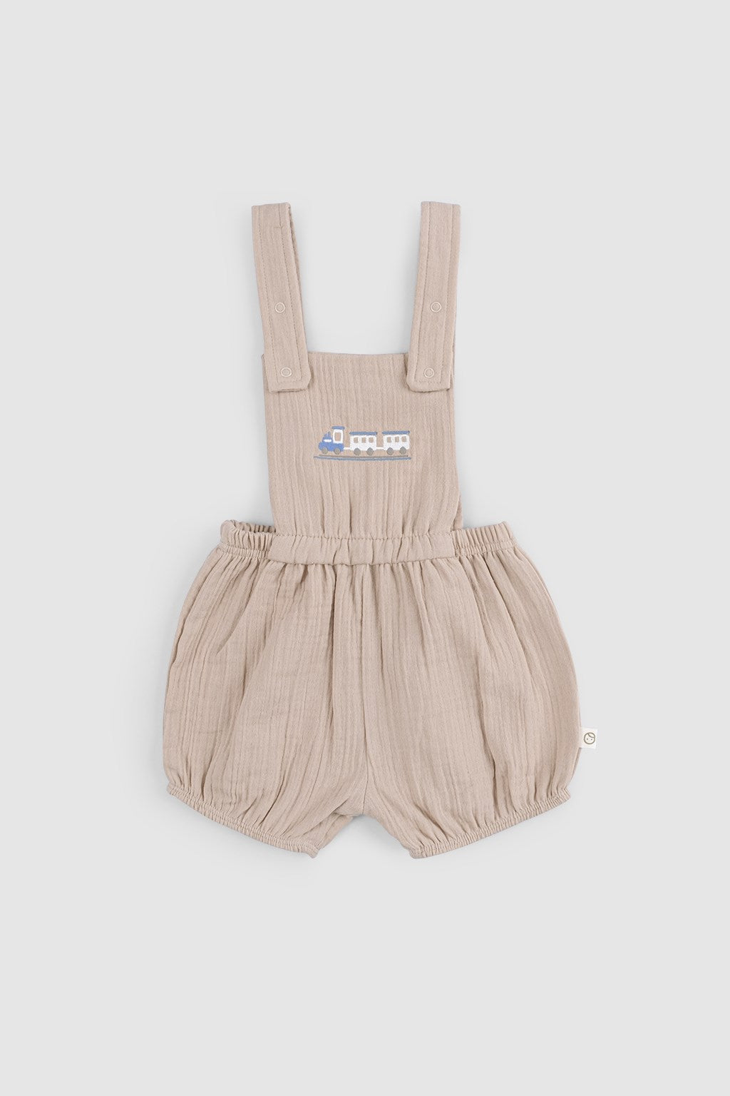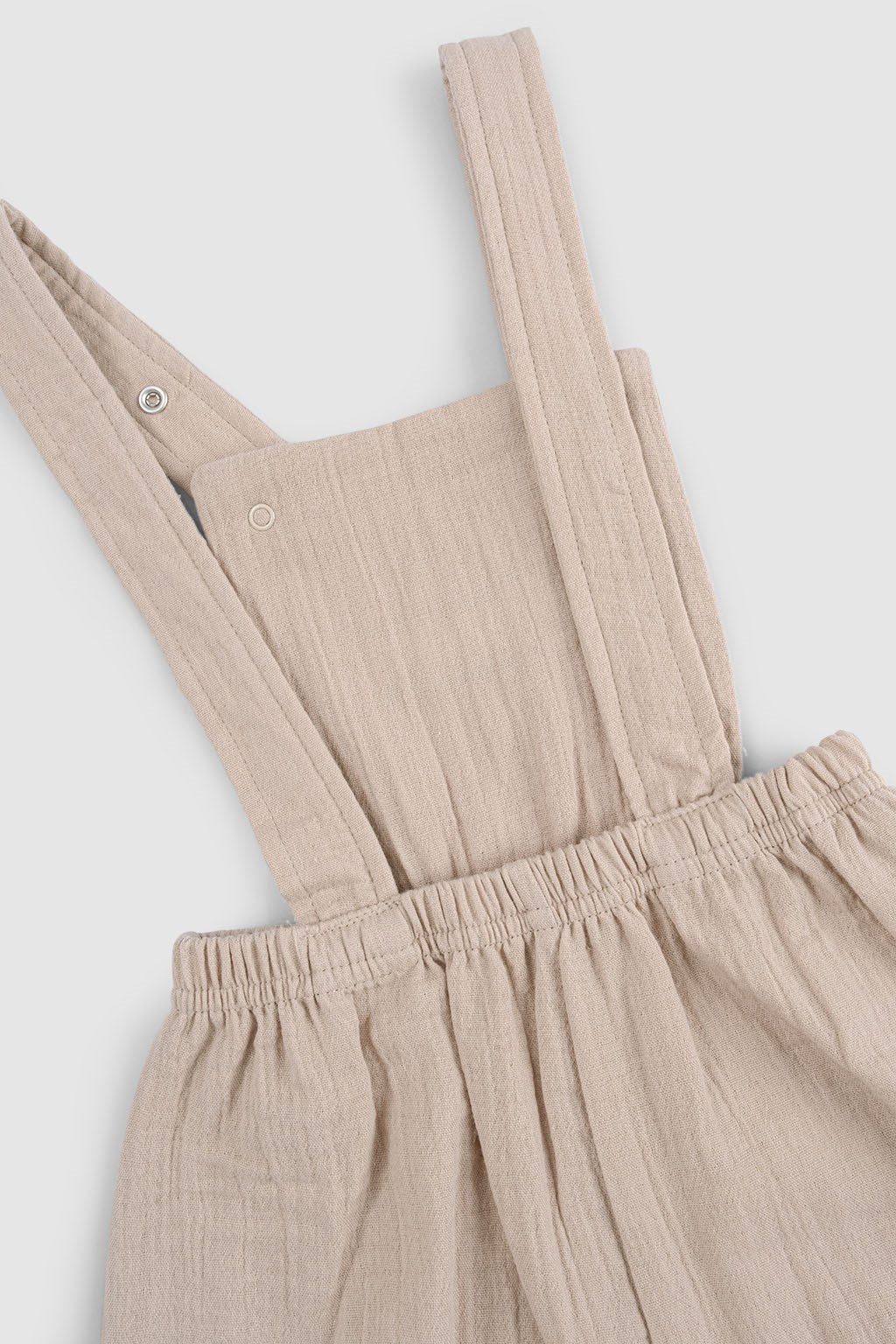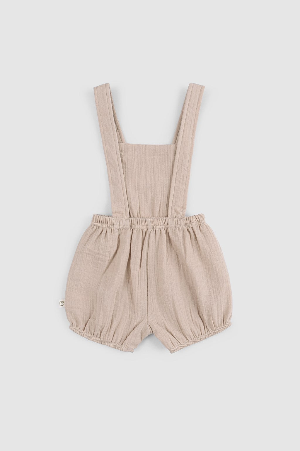 Organic Cotton Muslin Baby Bloomer Dungarees - Beige