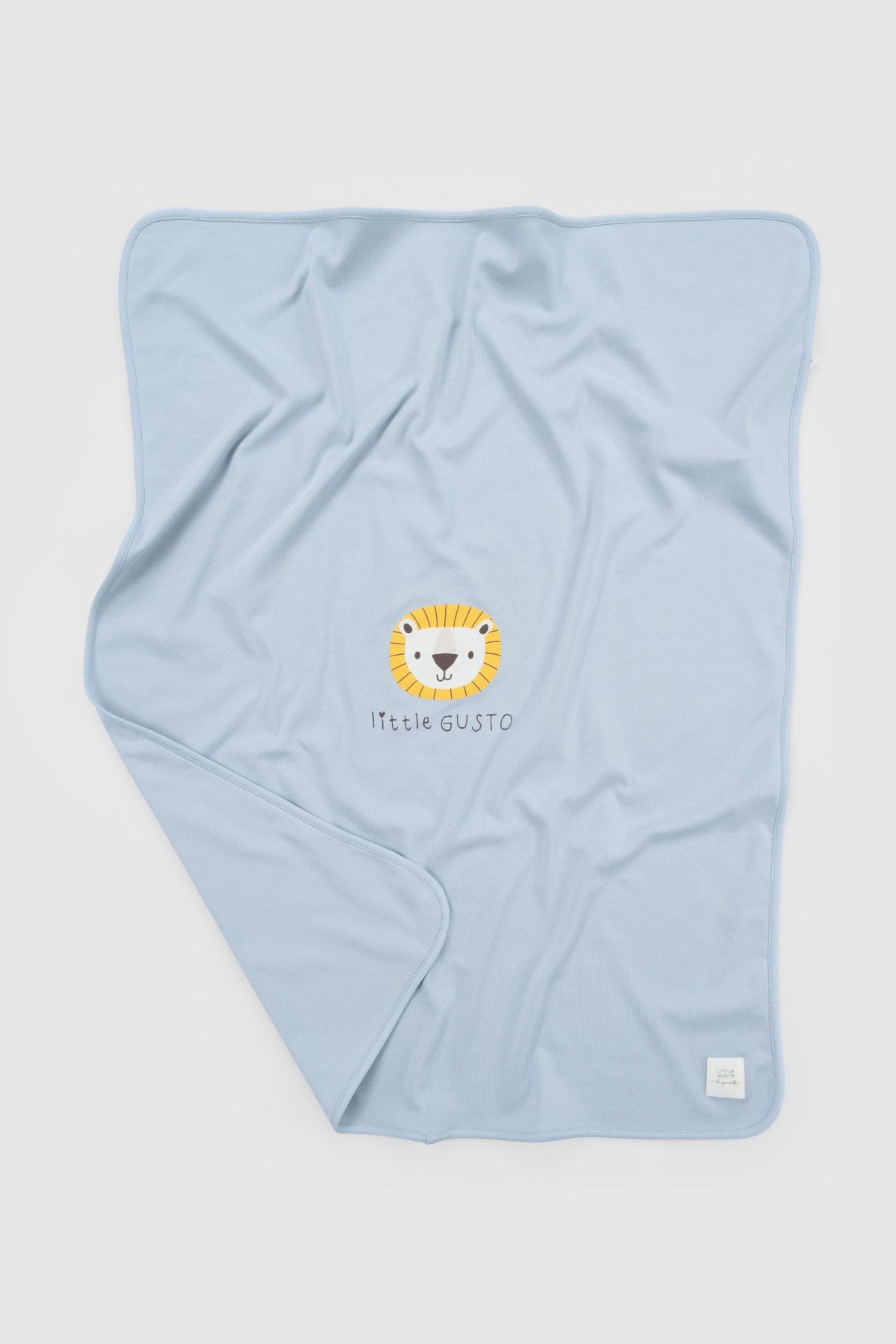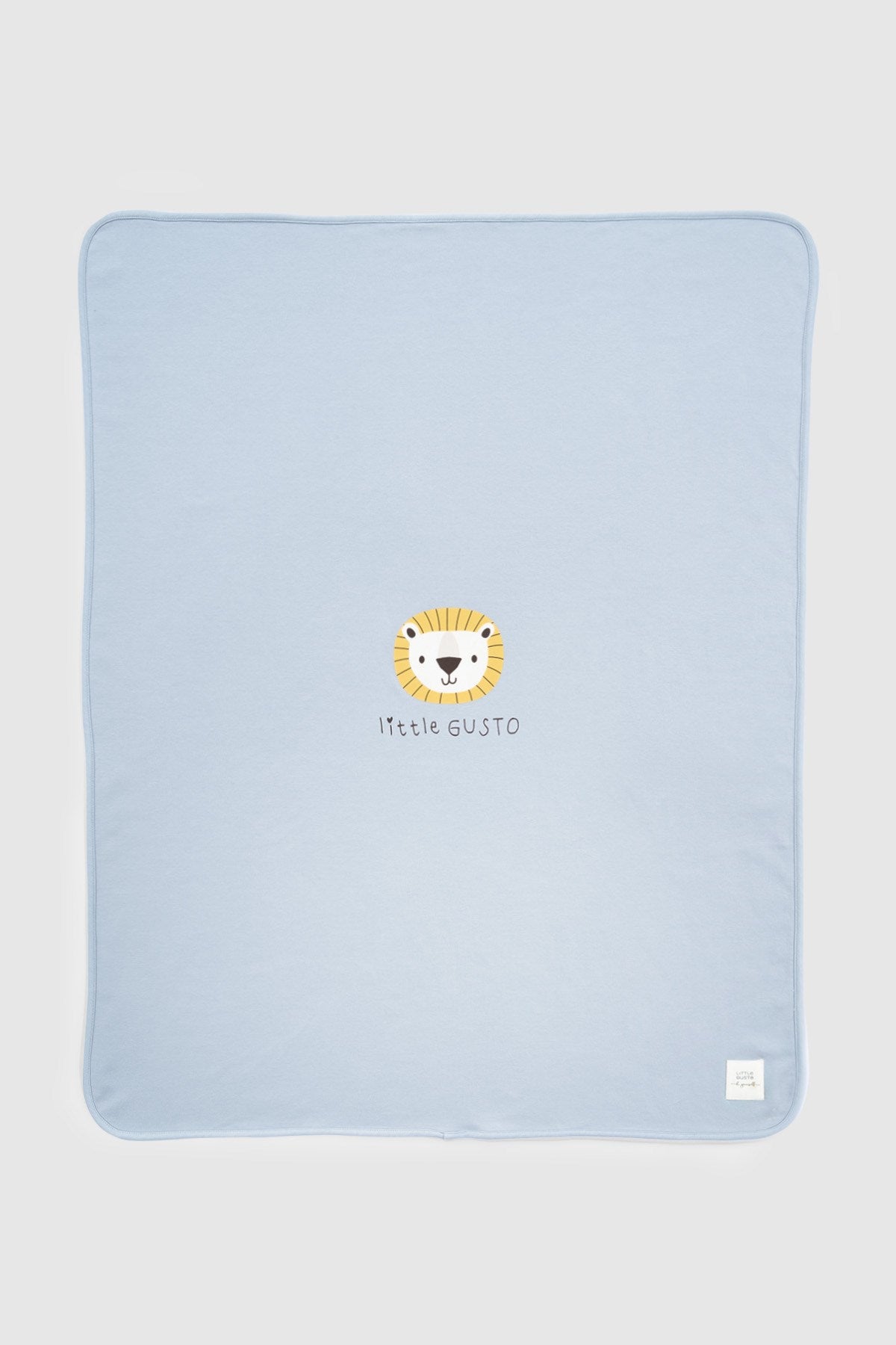 Keep your little one cosy and comfortable with our Organic Cotton Double Layer Lion Baby Blanket in Blue.