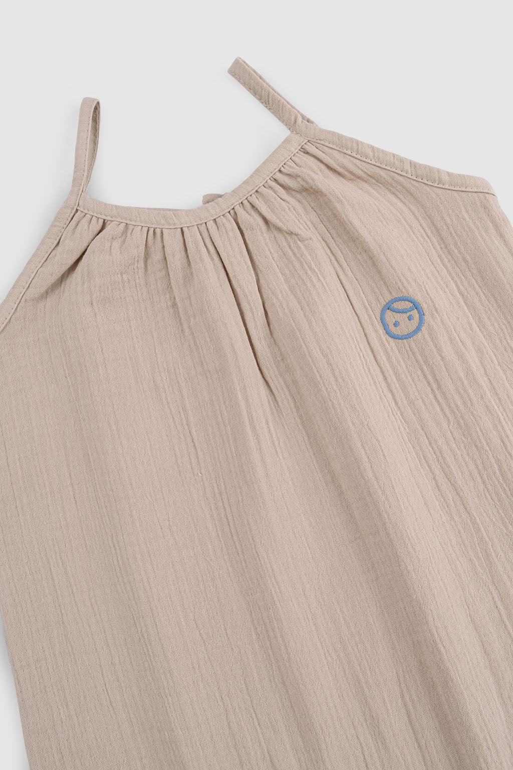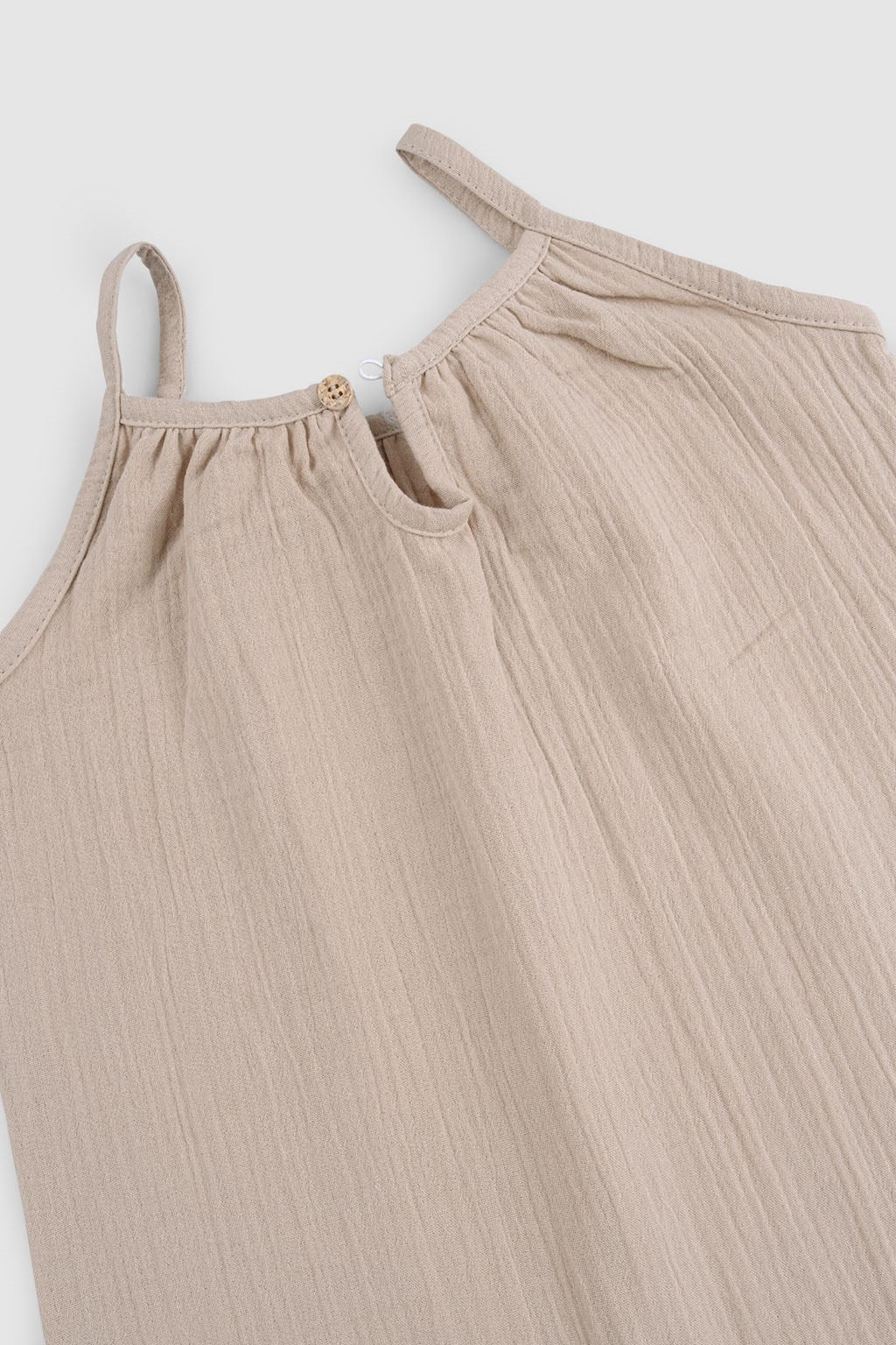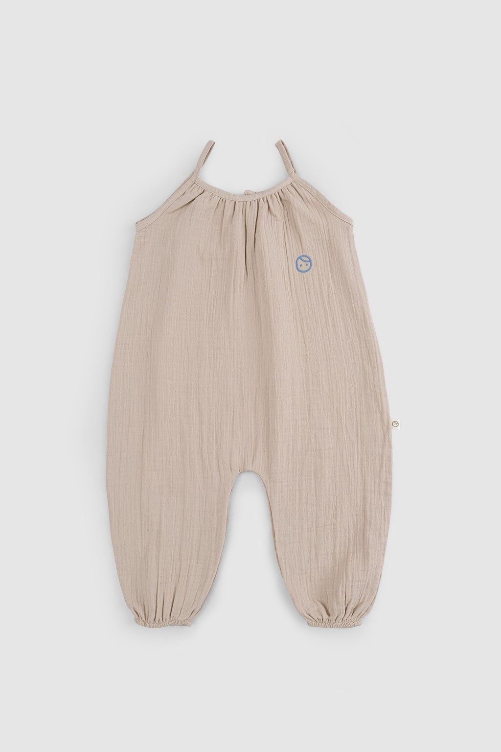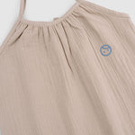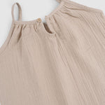 Our beige organic cotton muslin baby dungarees are designed for comfort, softness and effortless everyday wear.