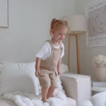 Organic Cotton Muslin Baby Short Dungarees – Beige
