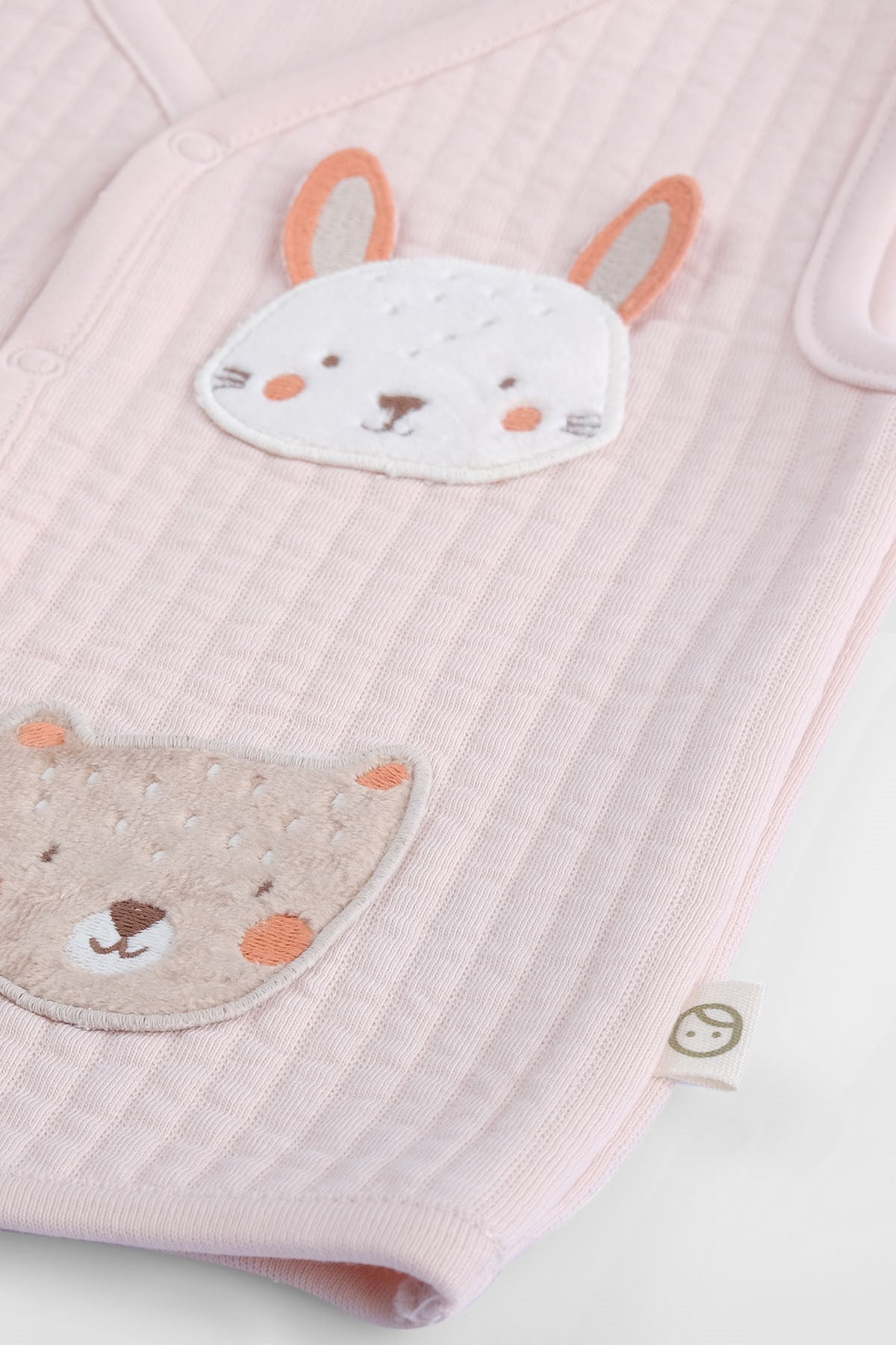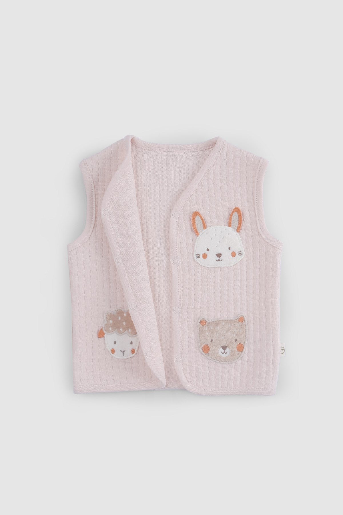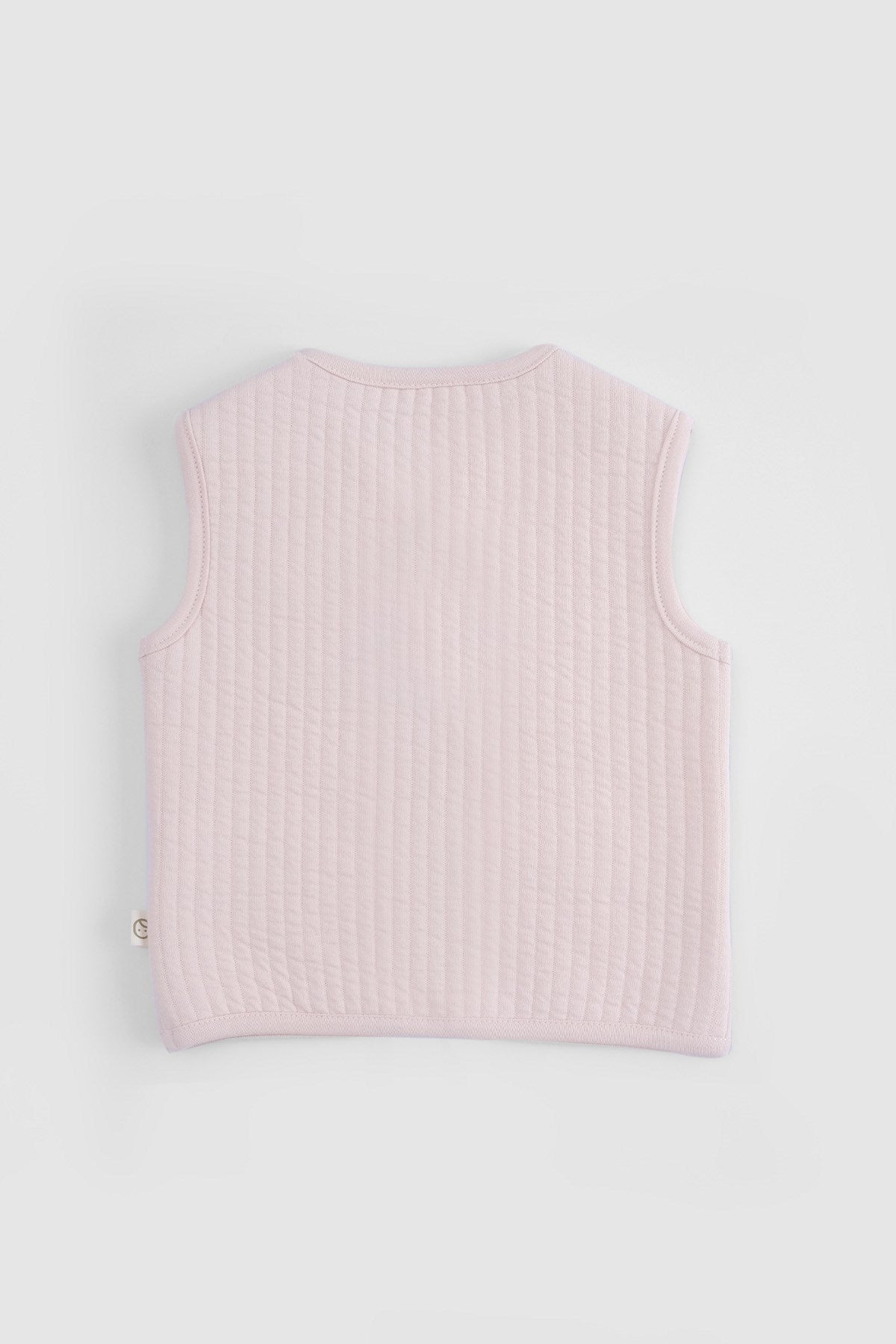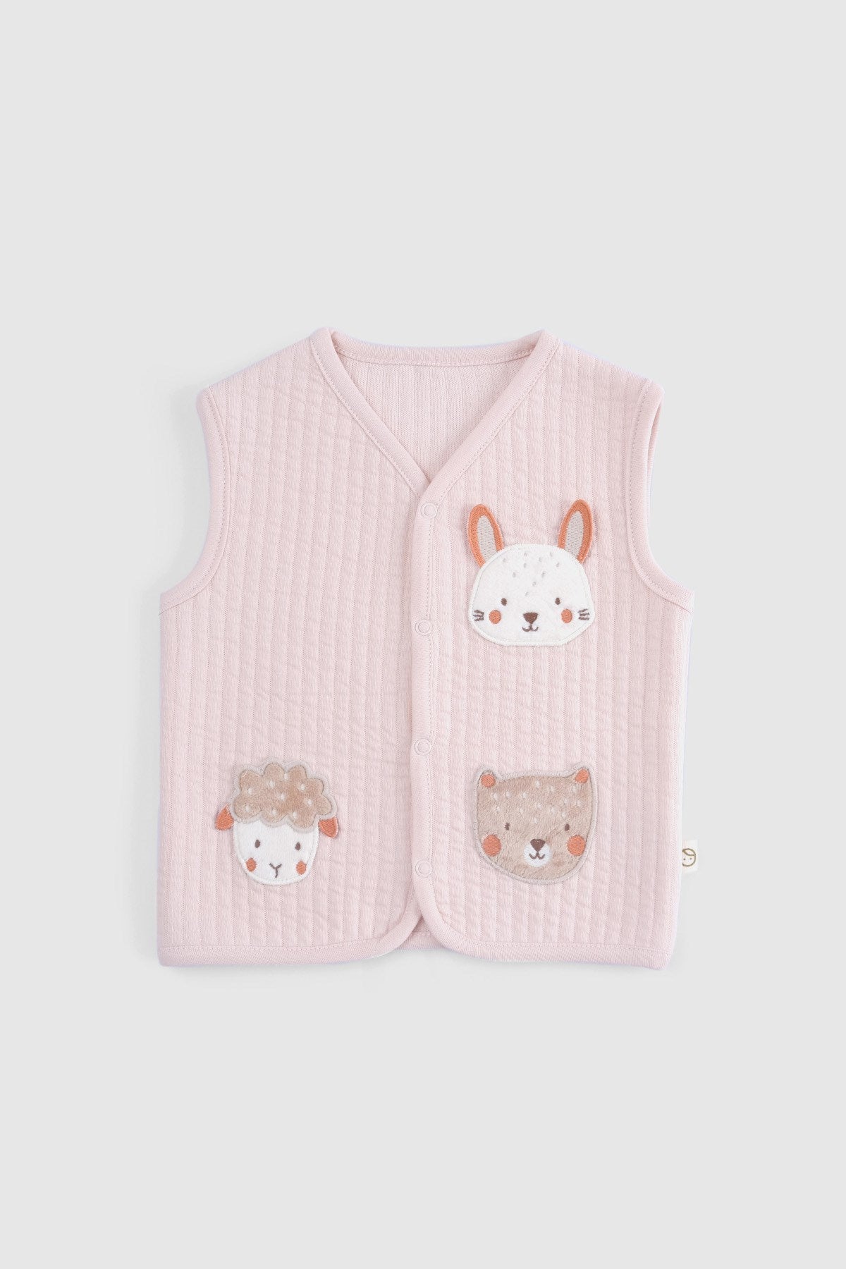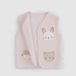 Our Quilted Organic Cotton Animal Appliqué Baby Vest in soft pink is a cosy and charming layering piece designed for cooler days.