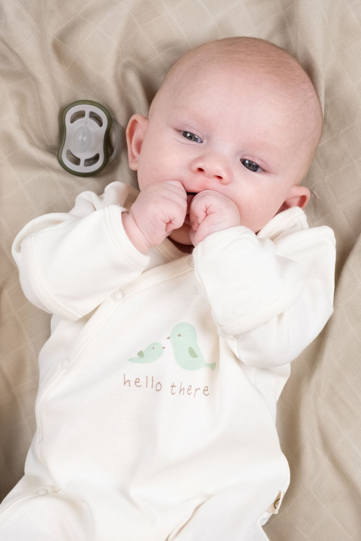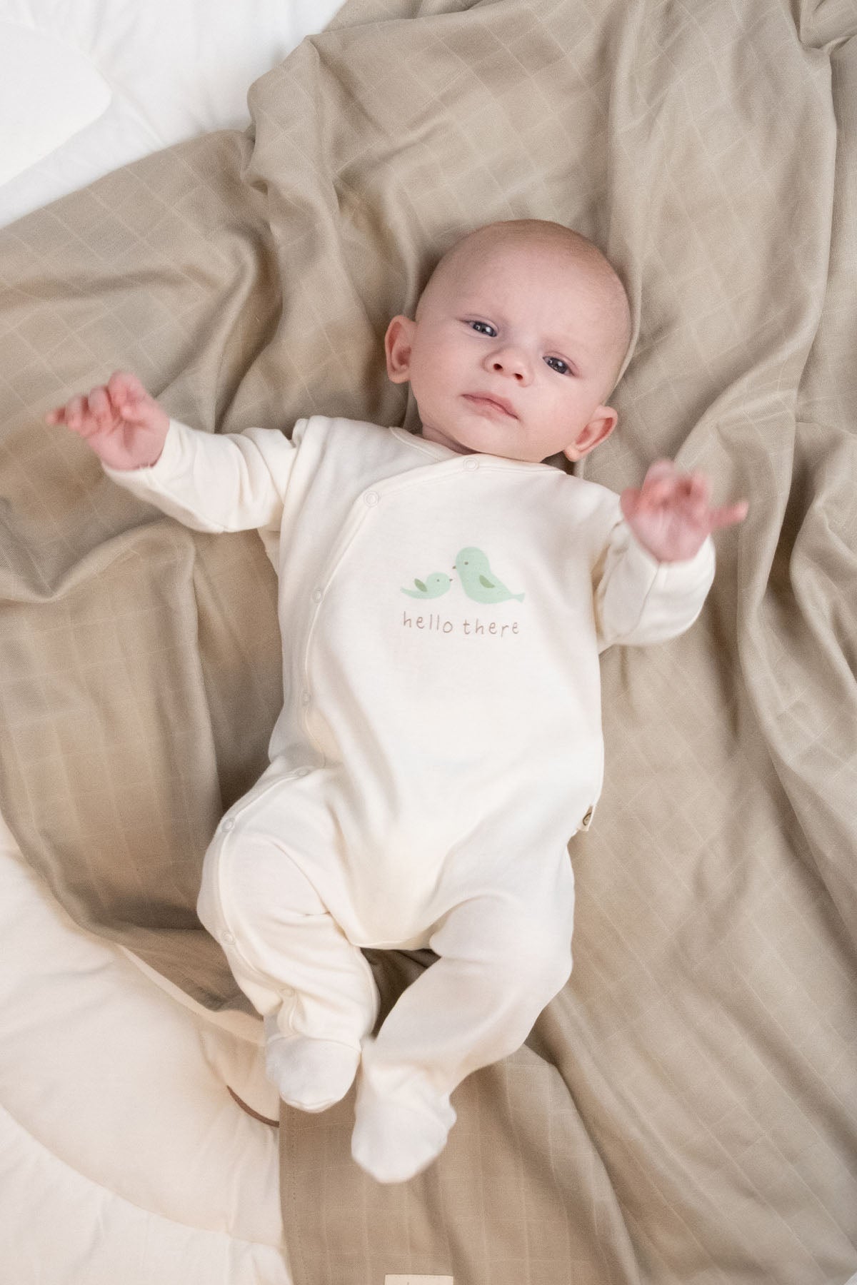 Made from 100% organic cotton, this 2 pack of Twig sleepsuits (babygrows) is breathable, gentle on delicate skin and perfect from birth onwards. The neutral ecru shade and minimalist design make it an ideal unisex newborn outfit.