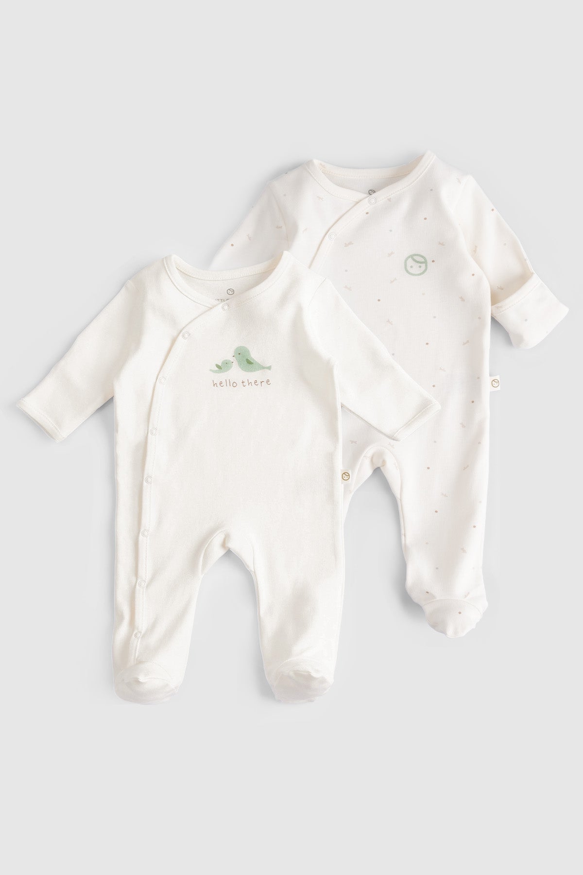 Twig Organic Cotton Sleepsuit 2 Pack – Ecru